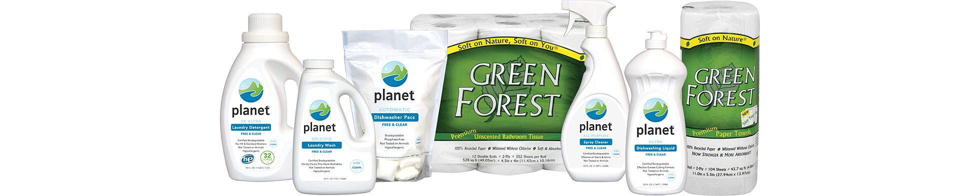 Planet and Green Forest environmentally friendly household cleaning products are designed to be strong and effective, while at the same time gentle on you and our environment.